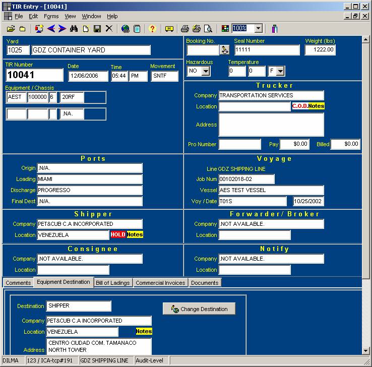 Equipment destination, bill of ladings attached to this TIR, Commercial
